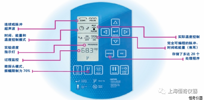 自動調節超聲工作的脈沖時間長度以控制溫度的過熱,保證樣本溫度始終保持在用戶設定的范圍之內(需配置溫度探頭)