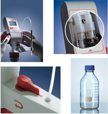 用VITLAB “continuous”數(shù)字滴定器,你可以進行連續(xù)的滴定并得到可靠的結(jié)果,為您在這個過程中節(jié)省大量時間。獲得專利的雙活塞泵設(shè)計使得溶液得以持續(xù)測量無需重復灌裝。此外,這種創(chuàng)新技術(shù)大大提高了安全性,它的緊湊型結(jié)構(gòu)和低重心構(gòu)造極大地降低了液體泄露的風險。排液管的長度和高度都可以調(diào)節(jié),使其可適用于各種高度的瓶子。獲得專利的回流閥設(shè)計具有兩大優(yōu)點:防止貴重試劑的損失和液體飛濺。另外還具有簡單易用的校準功能。誤差全部都在德國DIN EN ISO 8665-3標準要求的范圍內(nèi)。