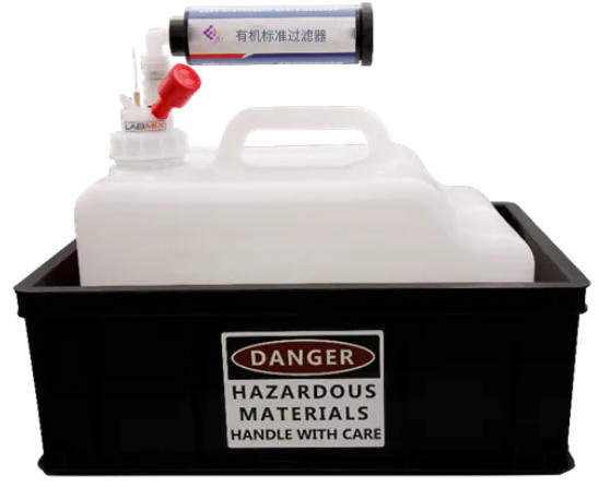 包含20L內覆膜廢液桶一個、內外蓋各一個、液相連接頭一套、過濾器快速接頭一套、無機標準過濾器一個