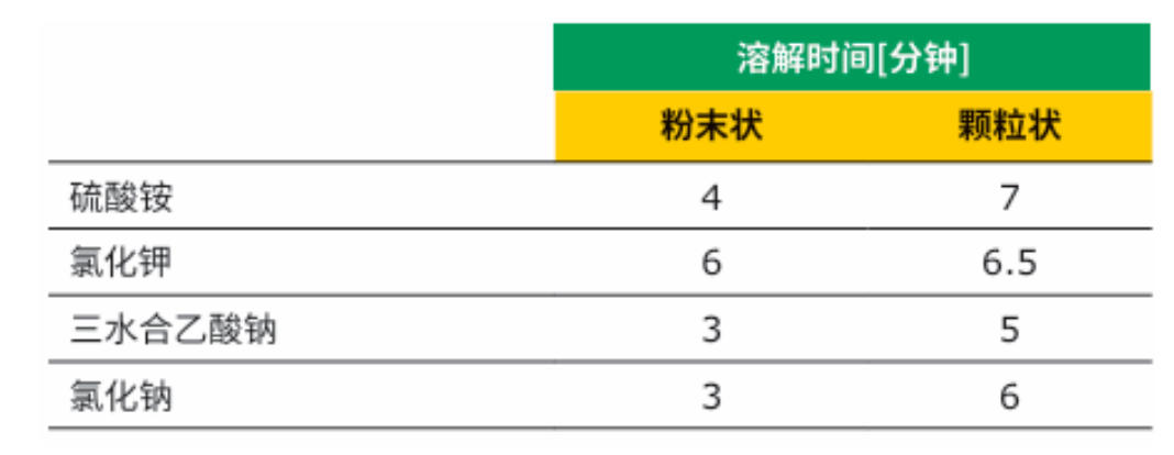 圖4. EMSURE®級顆粒狀無機鹽和粉末狀無機鹽的溶解時間對比