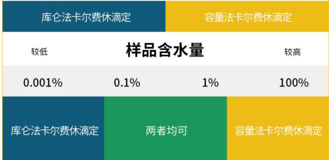 ► 當檢測含水量為0.1-100%的待測樣品時,可選擇容量法。待測樣品中未知的水分含量測定可通過卡爾費休滴定所需的滴定劑達到滴定終點時的體積的量來計算得到。樣品完全溶解或分散到適當的溶劑時,采用卡爾費休滴定劑滴定,滴定終點通過碘過量指示,采用電位滴定法確定。