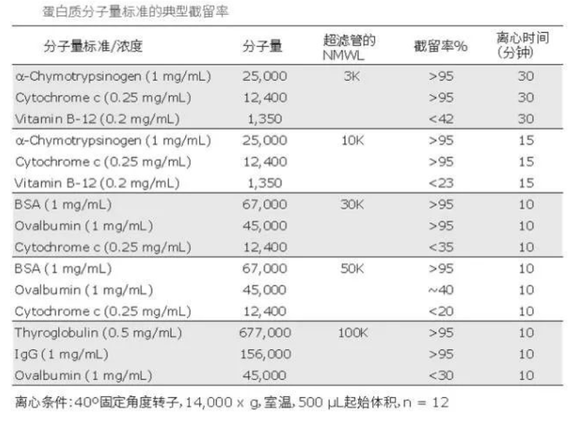 截留分子量選小啦!看到這個(gè)表,你是否發(fā)現(xiàn)原來抱怨Millipore超濾管流速偏慢的根源來自對(duì)于Millipore截留分子量定義的誤解。膜孔徑要小于目的分子這是第一原則。如果分子有近似球形的立體結(jié)構(gòu)(而非明顯的線性分子),在Millipore再生纖維素超濾膜體系內(nèi),選擇“等于”或“略小于”目的分子的截留分子量的超濾管是最佳選擇,這樣操作起來又快又好,既保證了樣品回收率,又縮短了離心時(shí)間,大幅降低大分子損傷風(fēng)險(xiǎn)。