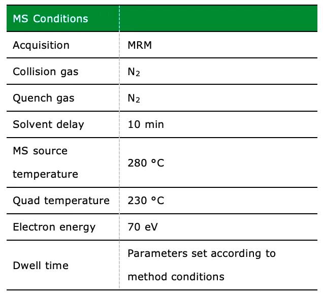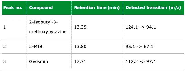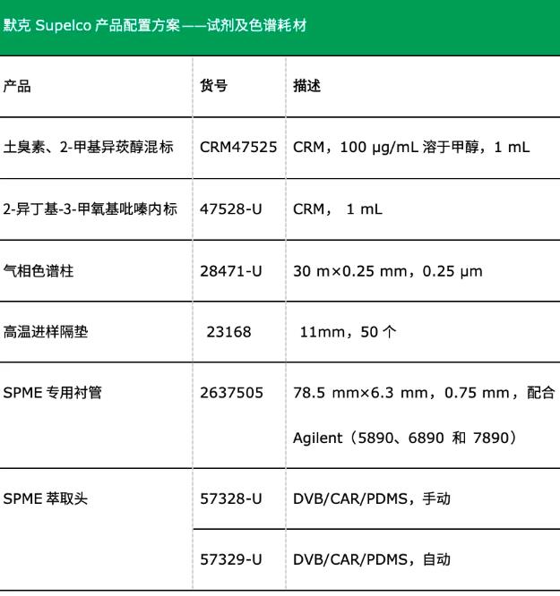 因此,我國新發布的GB 5749-2022《生活飲用水衛生標準》修訂版,新增了飲用水中土臭素和2-甲基異茨醇兩項指標的檢測,將指標限值設定為10ng/L。默克針對新增的檢驗方法 GB/T 5750.8-2023《第8部分:有機物指標》 土臭素/2-甲基異莰醇 75.1 頂空固相微萃取氣相色譜質譜法,使用50/30μm DVB/CAR/PDMS萃取頭(貨號:57328-U),以頂空方式從樣品中萃取采集土臭素和2-甲基異茨醇,然后直接進樣到GC-MS/MS進行分離分析。
