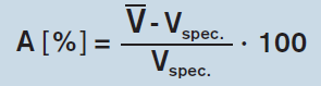 Accuracy(A)用于衡量移液儀器的準確度,指的是實際測量平均體積與目標體積之間的靠近程度,A(%)的公式是: