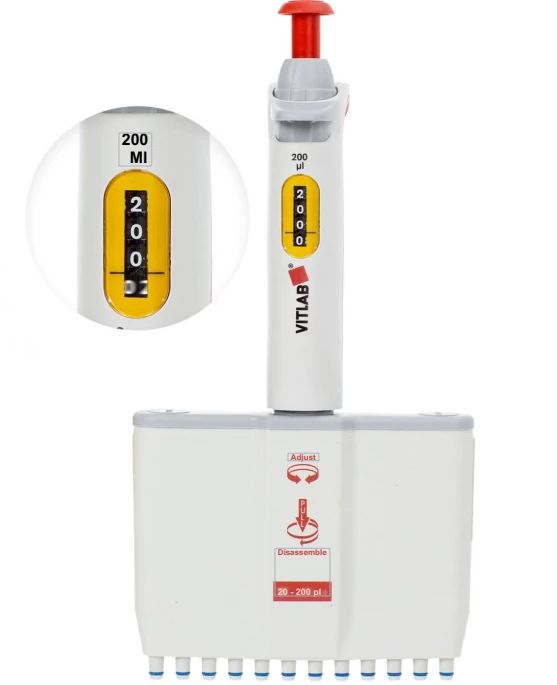 VITLAB® micropipette微量移液器具有放大功能的數字窗能夠直觀顯示四位數字,體積設定可精確到千分之一分度微調。