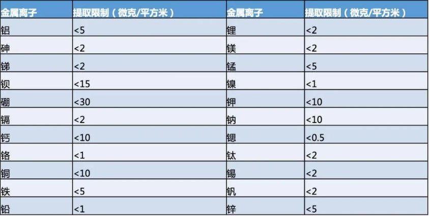 針對(duì)金屬離子污染,主要有22類,其分別的限制如下