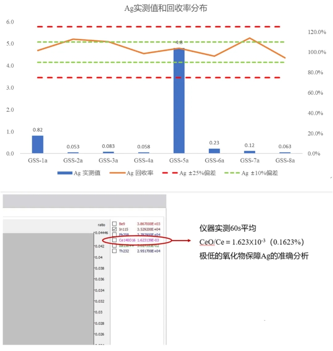 實際測試結果,Ag測試值均在標準樣品的不確定度范圍內,且準確度也滿足方法要求。