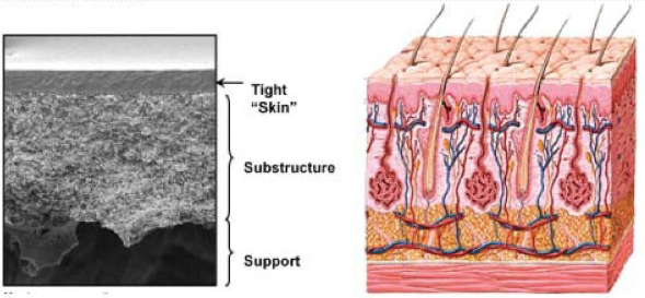 Strat-M”是由兩層聚醚砜(PES, 更耐擴散)附著在一-層聚烯烴 (更開放和擴散)上構成的。 這些聚合物層形成多孔結構,在孔尺寸和擴散性方面具有穿過膜的梯度。多孔結構浸漬有合成脂質的專有混合物,賦予合成膜額外的皮膚樣特性。